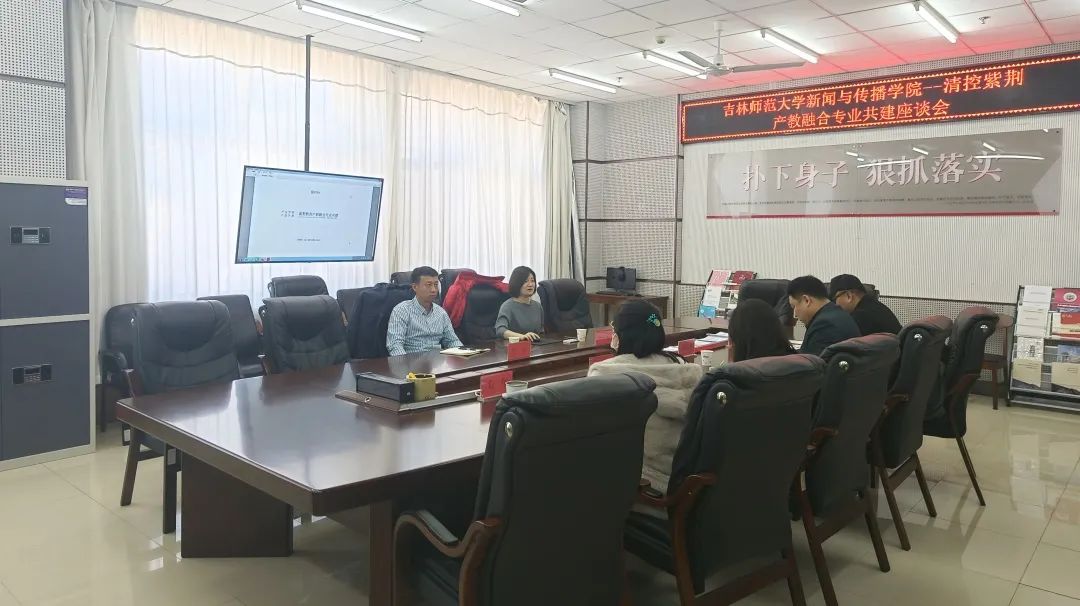 12月30日上午,吉林太阳成集团tyc122cc入口新闻与传播学院——清控紫荆产教融合专业共建座谈会在新传学院会议室举行。清控紫荆东北区总经理迟志猛、清控紫荆院校经理刘兵,新传学院副院长陈莹、实验中心魏国强主任、数字媒体艺术系罗光耀主任、数字产品设计工作室指导教师毛彤参加座谈会。校企双方共商数字经济发展大计,共同探索数字经济背景下高校数字产品设计与营销人才培养的新思路、新举措。