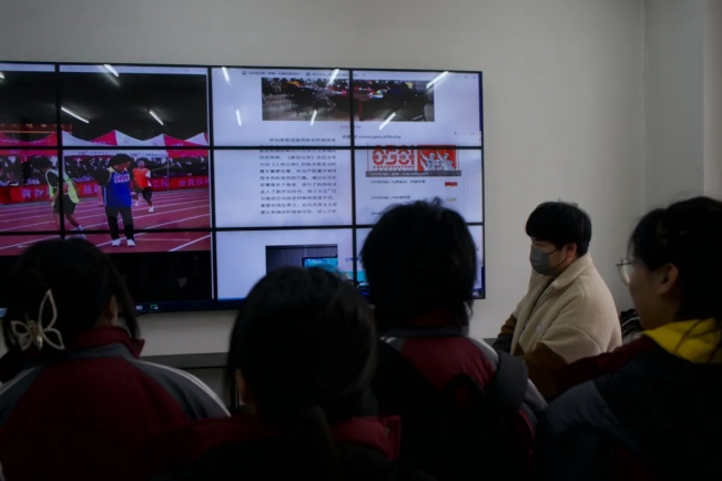 长春市养正高级中学师生先后参观了包括速录工作室、融媒体中央厨房、沙画工作室、吉师传媒电视台、声音艺术工作室等在内的24个工作室。
