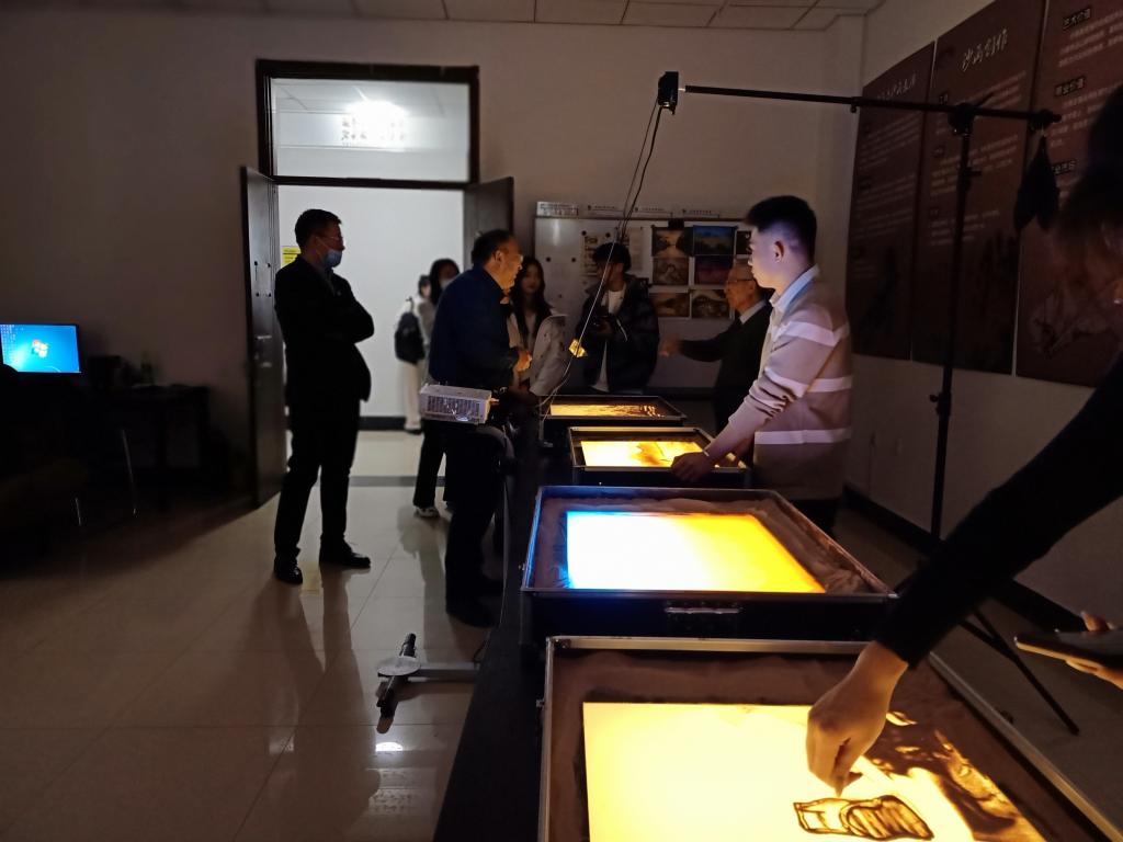 工作室面积80㎡,配有摄像机1台、沙画专业表演台4台、专业灯具1套、沙画瓶专业工具10套、投影仪1台,后期制作工作站1套,可满足沙画短片拍摄及沙瓶画制作。