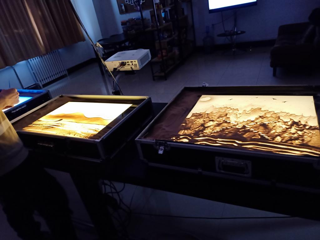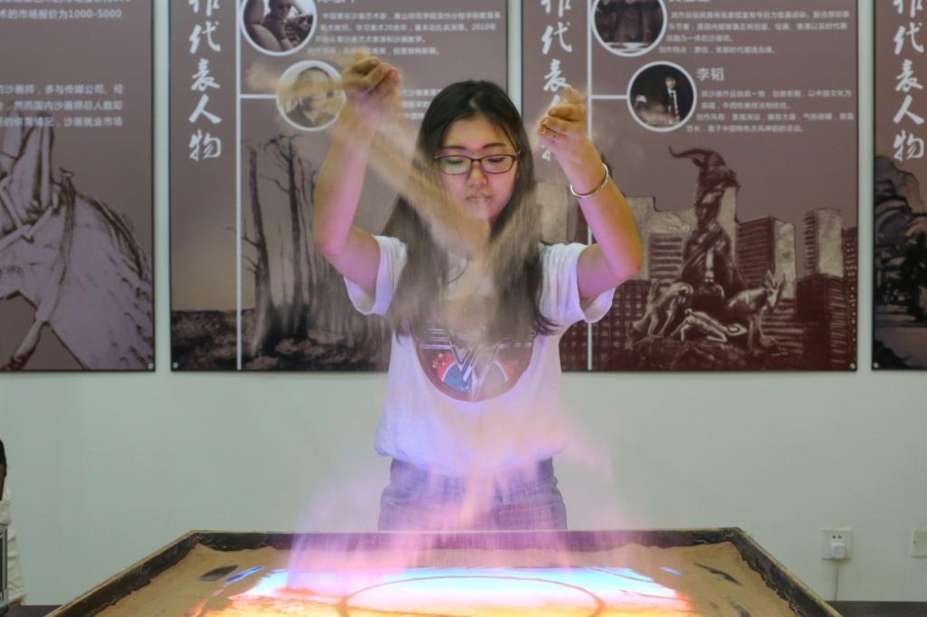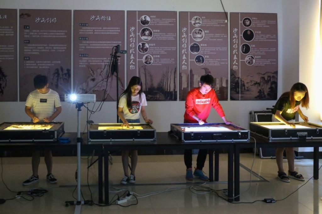 沙画工作室主要以培养学生自主创作能力为主,分设沙画和沙瓶画两个方向,沙画主要以培养学生具备沙画基础绘制技法,沙画视频剧本构思,沙画画面创作能力,后期剪辑处理相关软件应用能力为主,使学生能够独立进行沙画视频创作。沙瓶画主要以培养学生沙瓶画制作基础技法,沙瓶画创作为主,使学生具备独立创作能力。