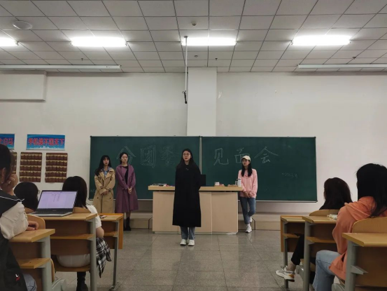 分团委学生书记王艺潼,学生副书记温悦彤、赵敏彤,各部门和中心负责人及新任部员出席本次见面会。