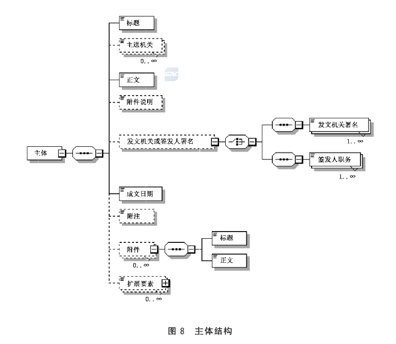 电子公文结构采用GB/T 18793一2002规定的XML格式进行描述,见6.2,其XML模型见附录A。