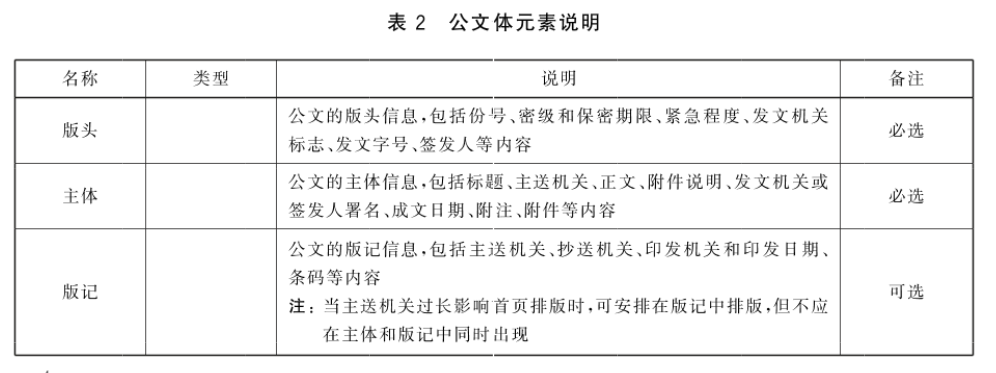 按照GB/T 9704一2012,公文体由版头、主体、版记三部分组成,其结构模型见图1。