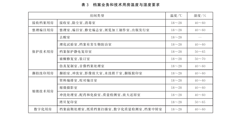 5.1.4 档案业务和技术用房温度与湿度应符合表3的要求。