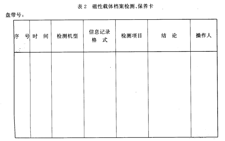 应定期保养及维护磁性载体档案,并应建立磁性载体档案检测、保养卡(格式见表2),包括: