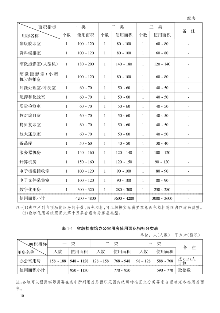 (2)对外服务用房和档案业务和技术用房面积计算方法两类用房存在设备的,根据设备占地面积推算,不存在设备的,依据调研数据给出相应指标。