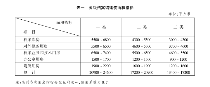 第二十一条 省级档案馆建筑面积指标应符合表一的规定。