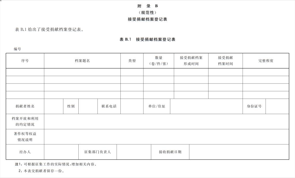 ±í B.1 ¸ø³öÁ˽ÓÊܾèÏ×µµ°¸µÇ¼Ç±í¡£
