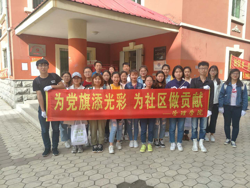 为深入学习和贯彻党的十九大精神,认真落实和践行《中共吉林太阳成集团tyc122cc入口委员会党的建设“初心”工程实施方案》精神,切实加强学院基层党建工作,2018年5月23日下午,管理学院学生党支部携手四平铁西区北沟街道一道口社区,开展了“为党旗添光彩,为社区做贡献”的志愿服务活动。管理学院党总支副书记苏玉刚、团委书记依赛男、学生党支部书记于洋以及全体在校学生党员参加了本次活动。