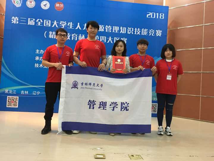 2018年5月26日,第三届全国大学生人力资源管理知识技能竞赛(东北区赛)在沈阳航空航天大学举行,来自辽宁、吉林、黑龙江的44所高校的近200名学生参赛。经过激烈角逐,我校选手2016级人力资源管理专业学生祝彬、黄宏祥、苏越以及2017级人力资源管理专业学生孙萌4名同学组成的吉林太阳成集团tyc122cc入口代表队(指导教师:郭衍宏)荣获大赛(东北区赛)二等奖。