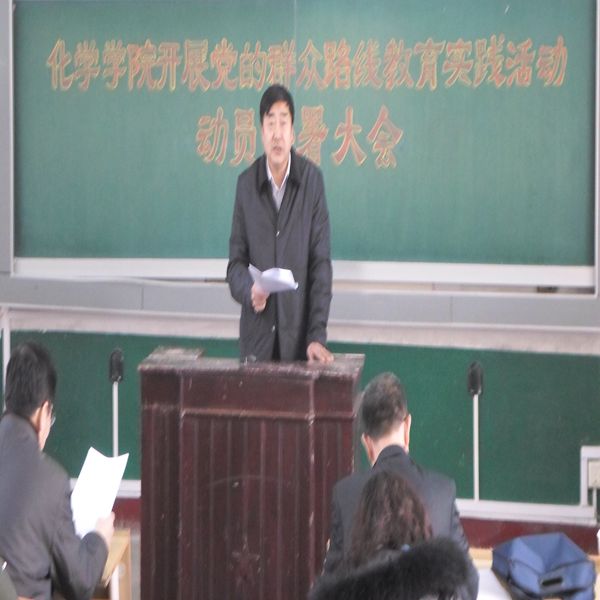 2014年3月12日,化学学院党总支部在第四教学楼4225教室召开深入开展党的群众路线教育实践活动动员部署大会。学校党的群众路线教育实践活动第3督导组赵建臣组长、孙光莹同志和我院党政班子成员、全院教职工、全体学生党员参加了大会。会议由院长、院教育实践活动领导小组副组长常立民主持。