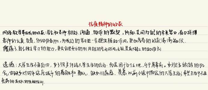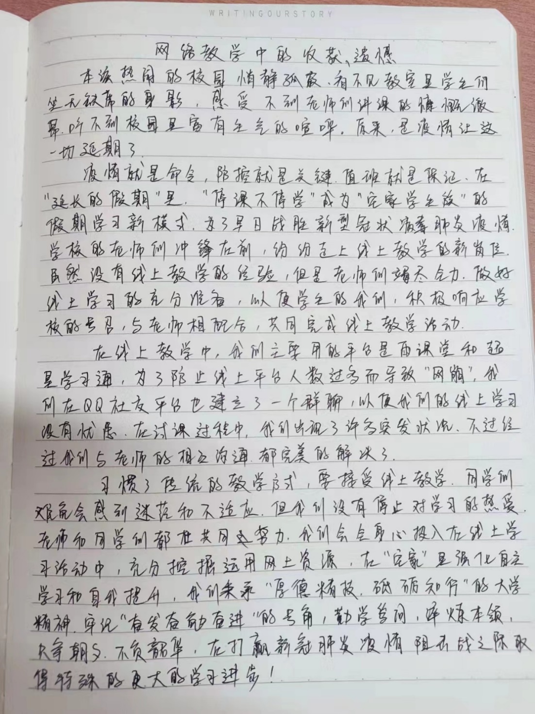疫情虽然带来了不便,但网络云教学,也给了我们不一样的经历不一样的收获。同学们感触颇多,有收获亦有遗憾。