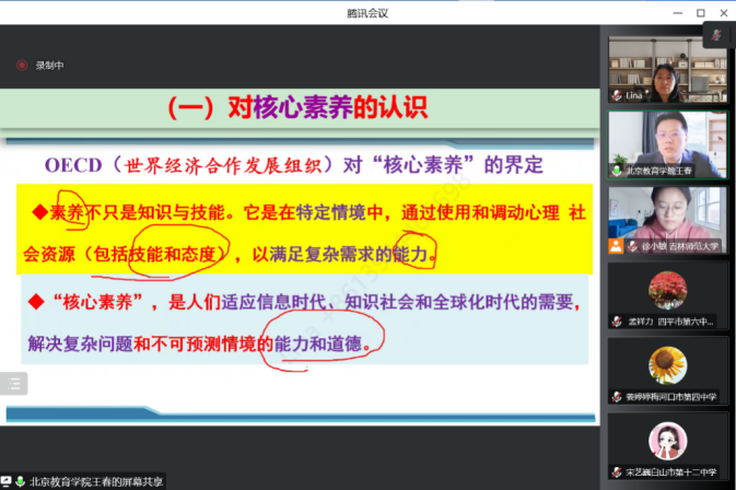2022年11月26日,吉林太阳成集团tyc122cc入口化学学院邀请来自北京教育学院的王春副教授,以腾讯会议直播的形式,为我院2021级、2022级专业硕士研究生做题为《核心素养导向下的初中化学实验教学研究》的专题培训,此次培训内容精彩,从对学科核心素养的认识角度向学生们展示了王春老师的教学研究思想。