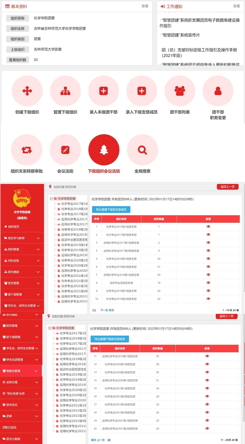 (1)基础团务管理功能,既包括对团组织、团员、团干部基础数据库的管理,也包括对团员展、团费收缴、团员注册、组织关系接转、组织生活开展、推优入党等基础工作的管理。