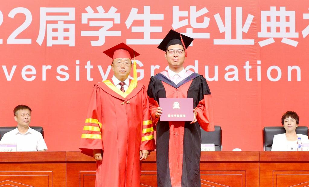党委书记王喜库为2022届优秀本科毕业生代表颁发证书