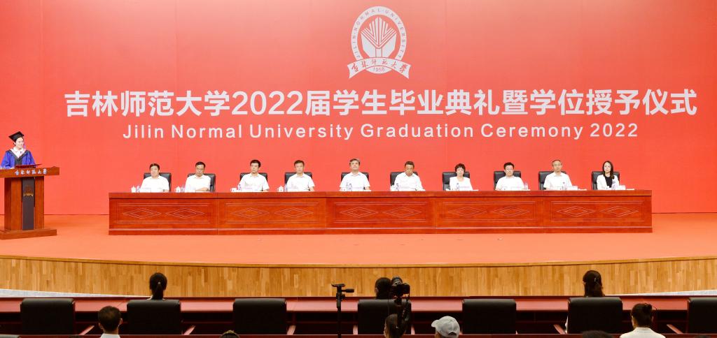毕业典礼上,化学学院赵丽娜教授代表全体教师发言;数学与计算机学院张楠同学代表2022届本科毕业生发言;马克思主义学院任若楠同学代表2022届研究生毕业生发言;经济管理与法学学院王馨茁同学代表全体在校生发言。毕业典礼上播放了《明天,你好》——吉师2022年毕业季献礼片。