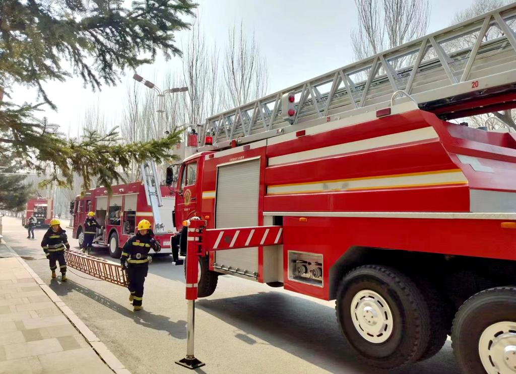本次消防救援演练包含五项内容。第一项内容为模拟火灾报警过程。首先公寓门卫拨打119火警电话和学校报警电话,并告知着火地点、着火原因、是否有人员被困等情况。第二项内容为疏散楼内人员。校园微型消防站及铁西区消防救援大队消防员组织学生进行疏散,引导学生有序撤离,告知正确的逃生方法和姿势,避免拥挤、踩踏。第三项内容为营救被困人员。消防救援大队消防员利用直臂云梯和救生软梯对楼内被困人员实施营救。第四项内容为模拟灭火。消防队员进入楼内利用消防栓铺设水带的方式,配合低压水罐消防车的高压水枪和水炮进行灭火。第五项内容为消防器材使用方法讲解及实操培训。消防员为师生讲解灭火器和灭火毯等消防器材的使用方法及注意事项,学校微型消防站消防员进行现场演示,并指导师生进行现场操作。铁西区消防救援大队英雄中队共派出五台消防救援特种车辆参与演练,其中包含一辆消防救援主战消防车,一辆重型泡沫消防车,一辆直臂云梯消防车,一辆高压水罐消防车和一辆高喷消防车。