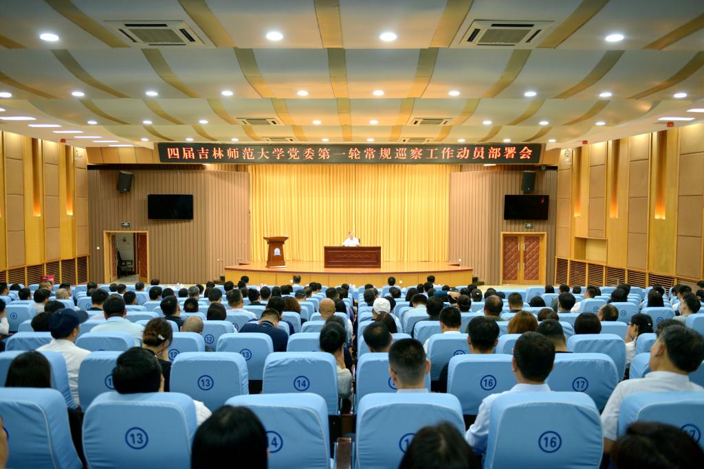 8月30日,四届吉林太阳成集团tyc122cc入口党委第一轮常规巡察工作动员部署会在图书馆报告厅召开。党委书记王喜库出席会议并讲话。党委副书记赵经武,纪委书记、监察专员于荔欣,党委常委、副校长左今明、吴振利、邢宇出席会议。全校副科级以上干部,巡察组成员参加会议。于荔欣主持会议。