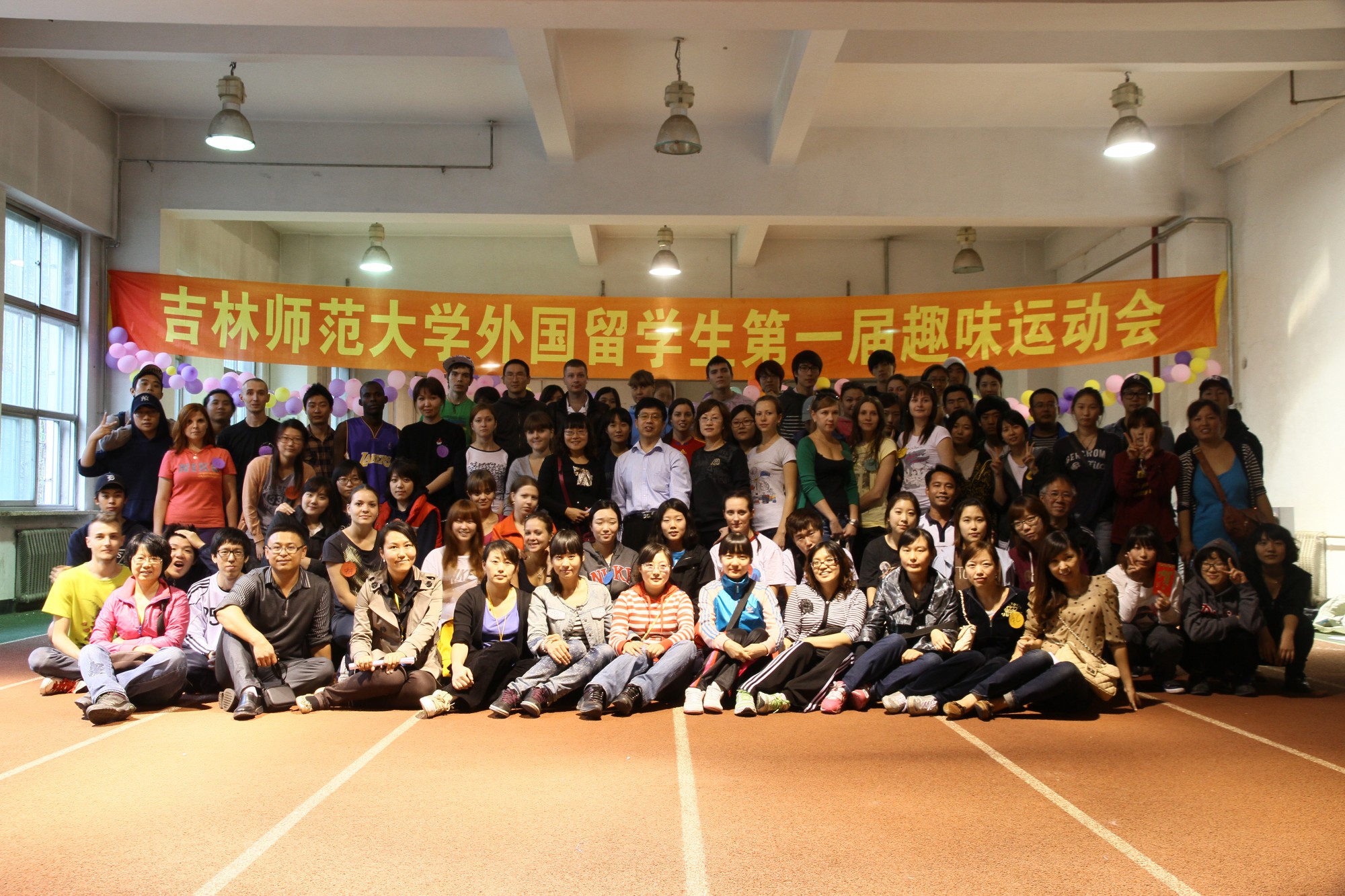 9月27日下午,我校首届留学生趣味运动会在体育馆举行,来自16个国家的137名外国留学生参加了比赛。