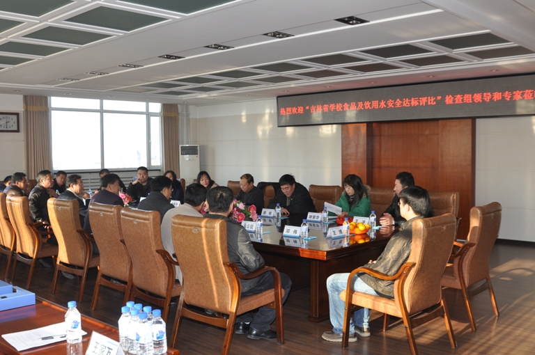 11月14日,由省教育厅体卫艺处处长刘强带队的吉林省“学校食品及饮用水安全达标评比”检查组一行10人来我校检查食堂、饮用水的安全卫生及达标情况。检查组由省教育厅、省卫生厅、省食品药品监督管理局和省高校后勤协会伙食专业委员会专家组成。校党委书记张波、副校长张勇及后勤管理处的相关人员出席了座谈会。