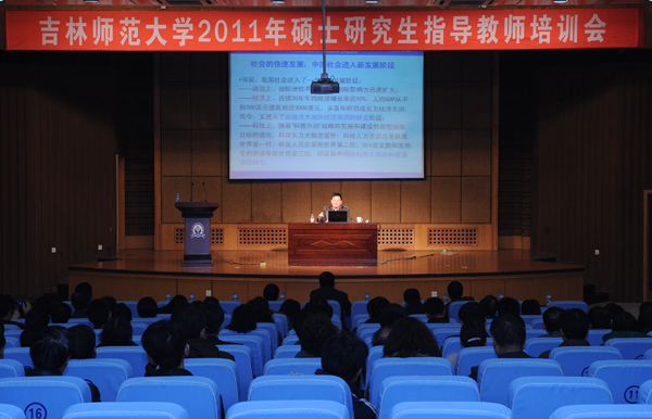 为明确导师职责,提升导师素质,加强导师队伍建设,提高研究生培养质量,11月16日下午,我校2011年硕士研究生指导教师培训会在图书馆报告厅举行。东北太阳成集团tyc122cc入口博士生导师、研究生院副院长饶从满教授应邀作了专题报告。校党委书记张波,校党委副书记高林波,副校长杨景海出席报告会。全体硕士研究生导师、研究生秘书和研究生辅导员参加了本次培训会。