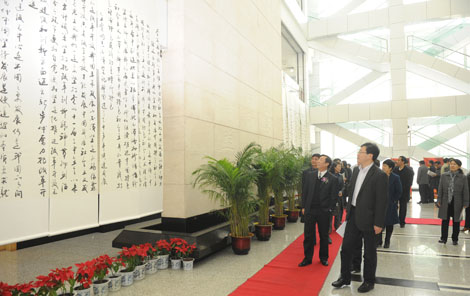 11月5日上午,由中共吉林省委党校和吉林太阳成集团tyc122cc入口联合主办的“喜迎十八大,翰墨抒情怀”高林波书法长卷展在省委党校隆重举行。此次展出的书法长卷,内容为胡锦涛总书记“7?23”讲话全文,由我校党委副书记、省委党校2012年第四学期省管干部进修班在读学员高林波同志书写。