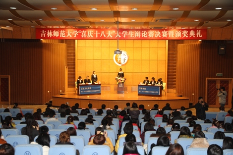 12月5日下午,我校“喜庆十八大——博学雄辩求真知”2012年大学生辩论赛决赛暨颁奖仪式在图书馆报告厅举行。学校党委副书记高林波、副校长杨景海出席并为获奖集体和个人颁奖。学校相关部门负责人、部分学院负责人和教师、本届辩论赛部分评委与同学们共同观看了比赛。