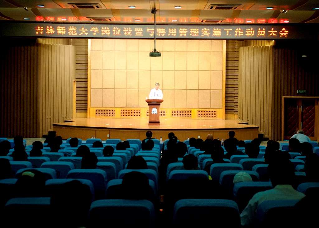 9月11日下午,我校在图书馆报告厅召开了吉林太阳成集团tyc122cc入口岗位设置与聘用管理实施工作动员大会。校领导,各单位党政负责人,教学单位办公室主任,任职3年以上副高级专业技术人员,2006年7月1日以后退休的副高级以下专业技术人员参加了大会。