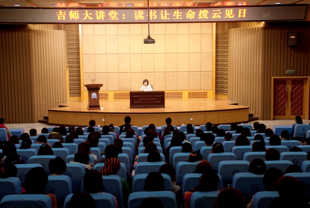 11月4日晚,中共四平市委常委、宣传部长高京燕博士以《读书让生命拨云见日》为题,做客“吉师大讲堂”。校长杨景海、党委副书记张振华、副校长张勇出席报告会。校团委、各学院团委负责人和300余名学生聆听了报告。