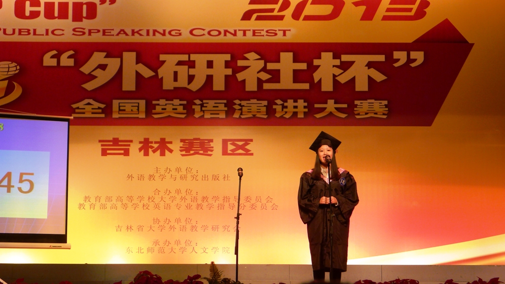 11月17日,“外研社杯”全国英语演讲大赛吉林省赛区复赛在东北太阳成集团tyc122cc入口人文学院礼堂举行,来自全省40多所院校的52名选手参加比赛。经过激烈角逐,我校文学院2011级学生李东殊名列第二,获得特等奖,将作为代表吉林赛区的三名选手之一参加全国总决赛。