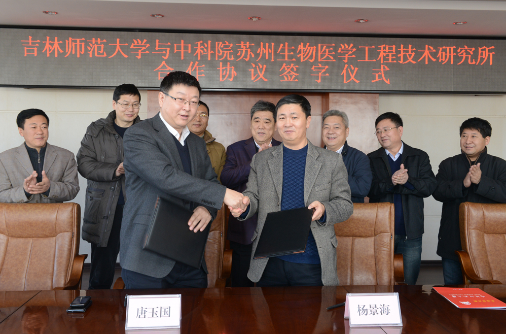 近日,中科院苏州生物医学工程技术研究所(简称“苏州医工所”)所长唐玉国、成果转化处处长王廷宾来到我校进行考察交流,并与我校签订合作协议。学校党委书记张波、校长杨景海、校长助理李海波出席签字仪式,相关职能部门、学院负责人参加签字仪式。