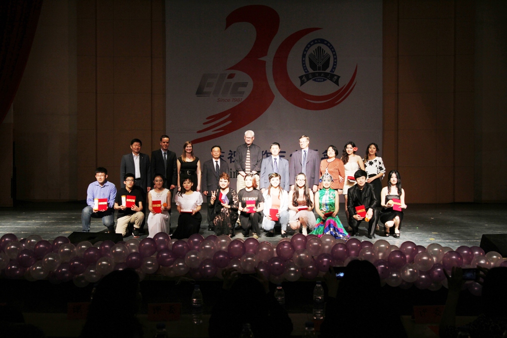 在庆祝仪式结束后,我校外国语学院第九届外语节正式开幕,共有13名学生参加了英文歌曲决赛。美国英语学会来宾对我校学生英语水平、精神风貌给予了很高的评价,同学们的精彩表演给各位来宾留下了深刻的印象。