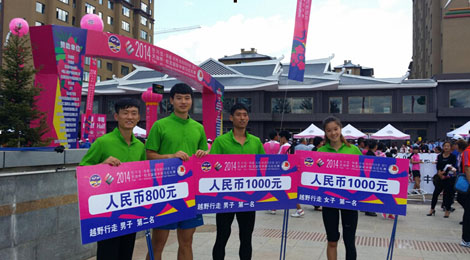 近日,2014天池杯·和龙国际半程马拉松越野行走赛在延吉和龙举行,我校由体育学院刘宇航、许硕、赵俊生、师施、董云凤五位学生组成的代表队参加了本次赛事中的5公里越野行走比赛,在张立平、佟云龙两位老师的指导下,与来自全世界(包括尼日利亚、俄罗斯等)300多名参赛选手进行激烈角逐,最终男子组取得了冠军、亚军、第十六名,女子组取得冠军和第四名的优异成绩。