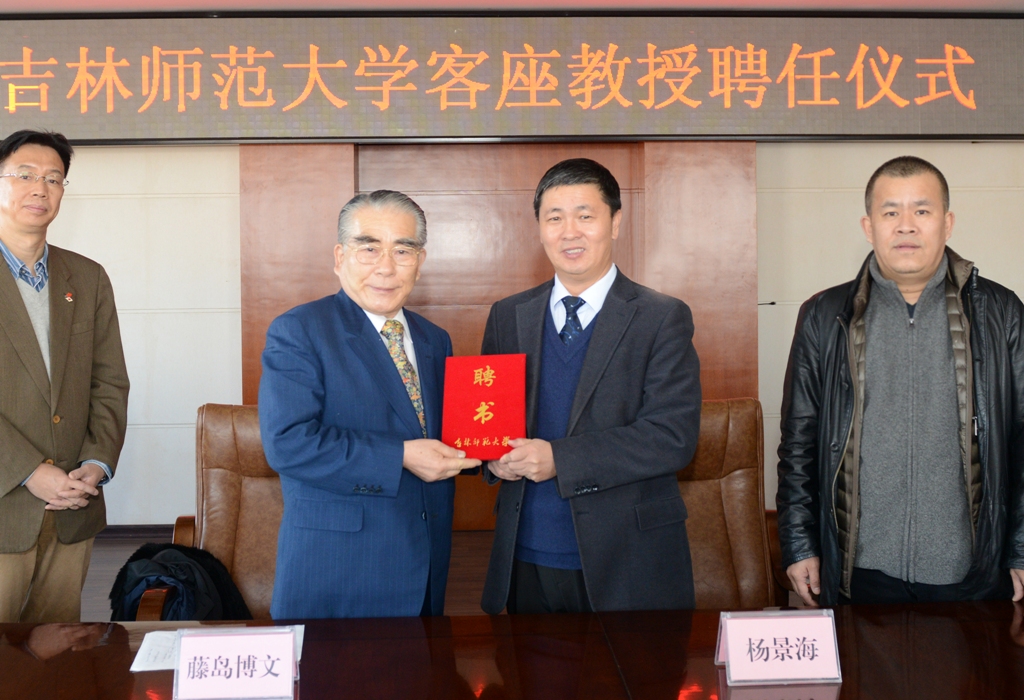 12月18日,学校在第一教学楼八楼会议室举行客座教授聘任仪式,聘任日本著名画家藤岛博文先生为我校客座教授。校长杨景海出席聘任仪式、致欢迎辞并为藤岛博文先生颁发聘书。美术学院部分教师参加了聘任仪式。