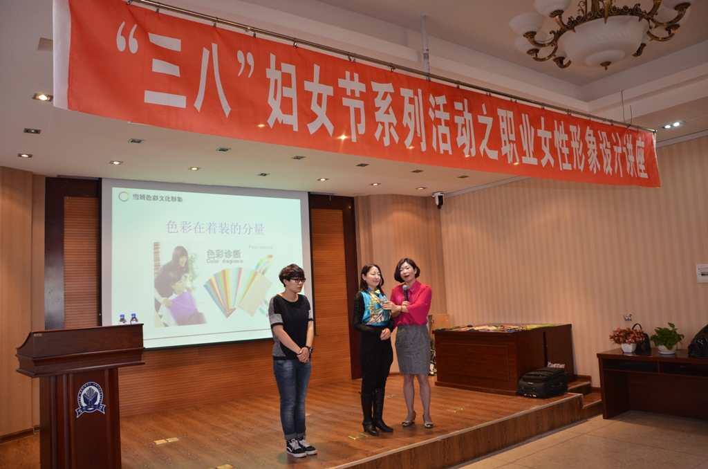 3月11日,“职业女性形象设计”讲座在图书馆一楼会议室举行。校妇委会委员、基层女工会主席、女工委员和部分女教职工聆听了讲座。讲座上,校工会、妇委会邀请知名女性形象设计师雪妍为学校广大女教职工讲授了职业女性形象设计中色彩的应用、职业形象中风格定律、国际职业女性场合着装标准、魅力形象的打造等,深受大家欢迎。女教职工们纷纷表示,举办此类活动非常有意义,既有利于提升女性魅力、素质和修养,又切合女教职工实际,有利于优雅职业形象的塑造。