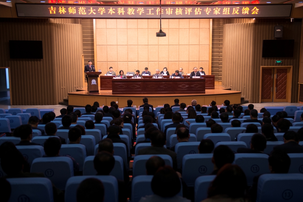 10月20日—23日,教育部专家组对我校本科教学工作进行审核评估,专家组在认真审核相关资料、数据和现场考察的基础上,对学校本科教学工作进行了全面细致的考察与分析,并于23日下午在图书馆报告厅向学校反馈了评估意见。教育部专家组成员,吉林省教育厅副厅长苏忠民,吉林省教育厅高教处处长宋辉出席反馈会。校党委书记张波,校长杨景海,副校长祖国华、张勇,纪委书记刘银善,校党委副书记刘万民,各院(部)院长(主任)、书记、教学副院长(副主任)、各专业系主任,各职能部门副处级(含)以上干部参加反馈会。