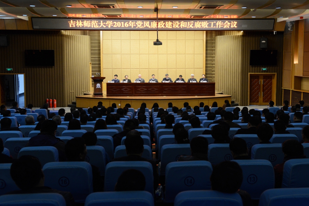 为深入贯彻落实十八届中央纪委六次全会精神和省纪委十届五次全会精神以及全国、全省教育系统党风廉政建设工作会议精神,总结部署学校党风廉政建设和反腐败工作,3月18日,学校召开2016年党风廉政建设和反腐败工作会议,大会通过视频会议系统设四平校区和长春校区两个会场。校党委书记张波,校长杨景海,校党委副书记高林波,副校长祖国华、张勇、李海波,纪委书记刘银善,校党委副书记刘万民出席会议。全校副科级(含)以上干部、纪委委员、校党代会代表、民主党派负责人、校关工委负责人、离退休老干部代表、市人大代表、政协委员参加会议。