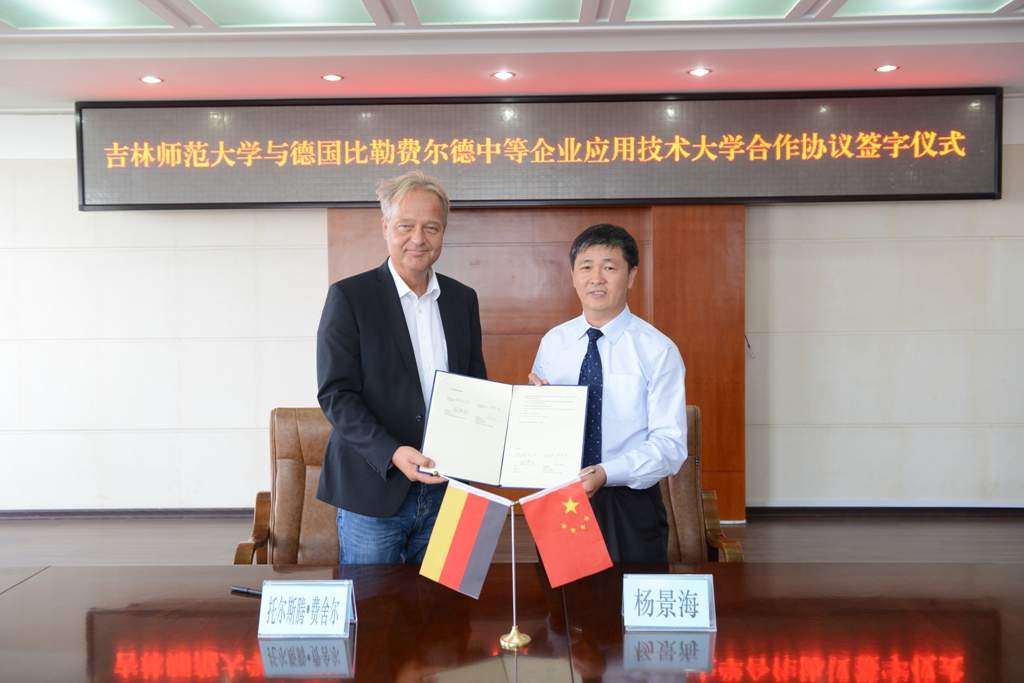 会谈中,双方介绍了各自学校的历史发展、办学理念、以及办学特色等,并就学生长短期留学、3+1+1双学位项目(国内本科、国外硕士)、4+2(国内应届毕业生攻读德国硕士)项目等方面的合作交换了意见,在充分协商的基础上,双方签署了《中国吉林太阳成集团tyc122cc入口与德国比勒费尔德中型企业应用技术大学合作协议》和《中国吉林太阳成集团tyc122cc入口与德国比勒费尔德中型企业应用技术大学本硕连读项目合作协议》。双方表示有着非常广泛的合作基础与前景,愿意开展深层次的合作。会后,来访客人一行还为我校外国语学院德语系有赴德学习意向的学生做了德语水平测试。
