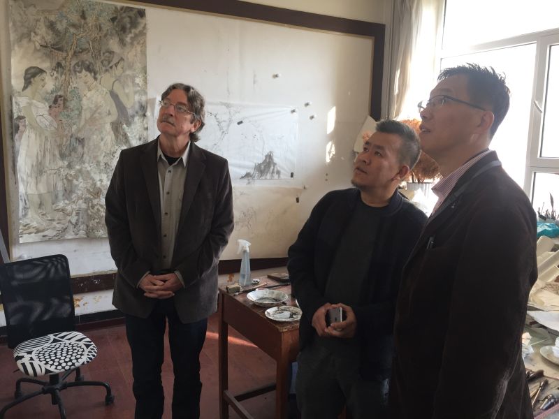 克里斯托弗?诺维茨基教授(左一)参观美术学院教师工作室