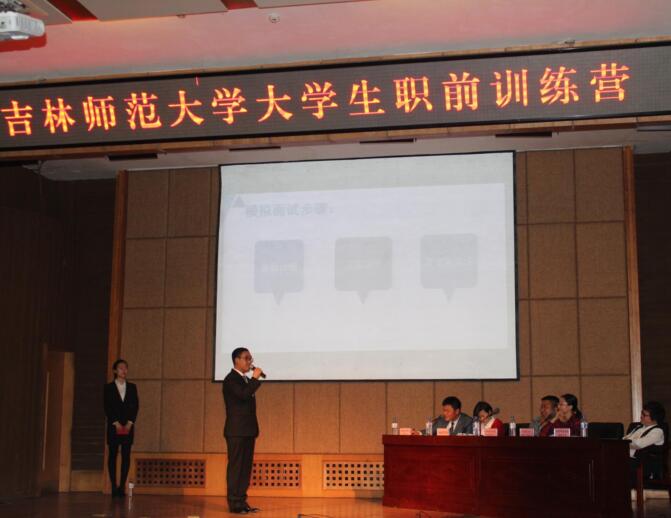 大学生职前训练营为期一天,以就业指导为依托,以提升职场技能为目标,以调节就业压力为手段,以最终实现就业为目的,采取主题报告和实践演练相结合的模式进行。“求职微论坛”设置了面试技巧、简历制作、求职的语言艺术等不同单元,邀请尹宾、马世瑞、高玉梅等就业指导专家授课指导。“求职面对面”版块,吉林太阳成集团tyc122cc入口附属中学附属小学、精锐教育集团、博彦科技股份有限公司、四平中友电子商务产业园有限公司、白象食品股份有限公司吉林分公司五家单位的现场招聘,不仅让学生了解了招聘流程,知晓了面试官选聘毕业生的标准,而且面试的实战演练让毕业生更加真实地感受了招聘的气氛,面试官及嘉宾的点评,让学生更加明确了自己的努力方向。