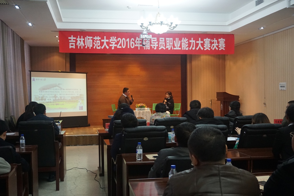 我校2016年辅导员职业能力大赛从10月12日开始,历时两个月,共有37名辅导员参加比赛。大赛以“比能力、展风采、提素质、炼队伍”为主题,分为初赛和决赛,初赛包括主题班会、笔试、案例分析三个环节。“主题班会”展示,主要考察辅导员对思想政治教育、社会学、心理学、管理学、教育学等相关学科知识的学习、掌握和应用以及辅导员围绕大学生关心关注的热点难点问题进行主题教育和思想引导的能力。“笔试”主要考察辅导员理论素养、文字能力以及网络素养。“案例分析”主要考察辅导员分析问题、研判问题、解决问题的能力。