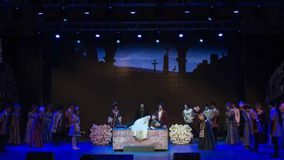 吉剧《罗密欧与朱丽叶》由四平艺术剧院有限责任公司出演,根据威廉·莎士比亚同名戏剧改编,分为序幕《一见钟情》、第一幕《私定终身》、第二幕《传书递笺》、幕间戏《教堂婚礼》、第三幕《祸起萧墙》、第四幕《神父定计》、第五幕《生死离别》。该剧被评为2016年度国家艺术基金舞台艺术创作资助剧目,并在2016年荣获吉林省舞台艺术最高专业奖“桃李梅”奖。