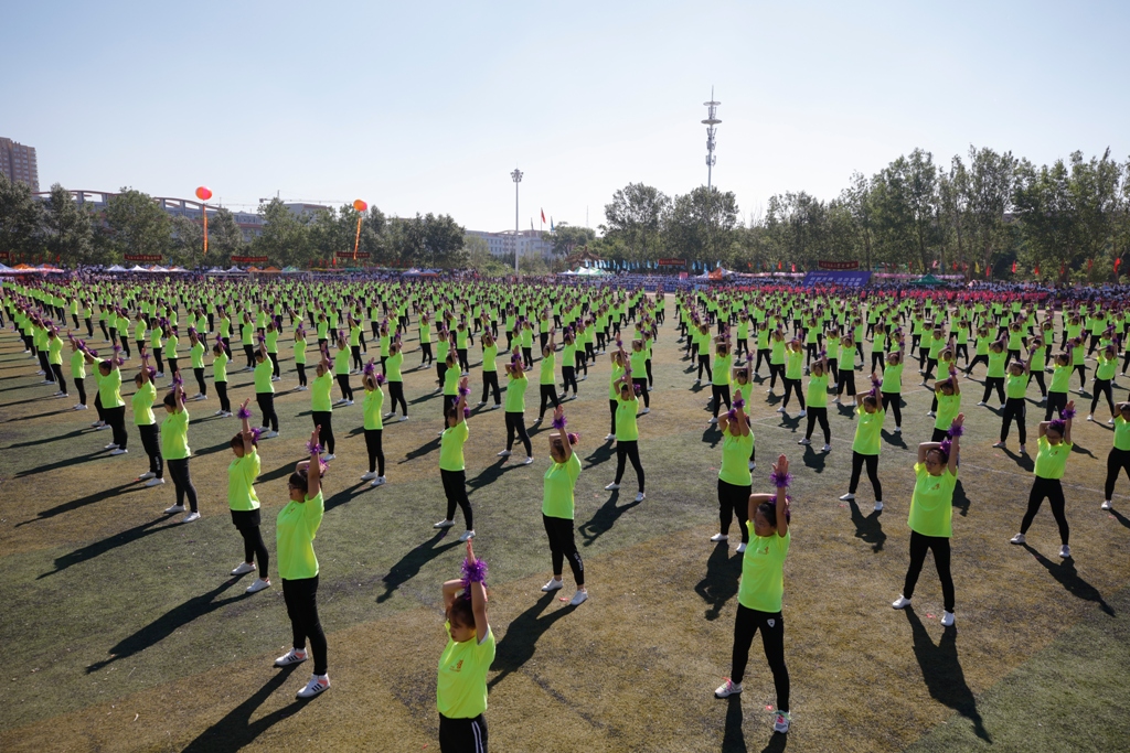 开幕式上,学生表演了大型团体操“来吧,冠军”,教工进行了第一套戏曲广播操展演。
