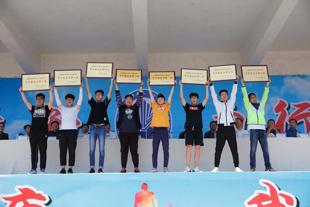 校党委副书记、校体委副主任刘万民致闭幕词。他代表运动会组委会,向在本届运动会上取得优异成绩的运动员和获奖单位表示最热烈的祝贺,向为本届运动会付出辛勤劳动的裁判员、工作人员和所有老师、同学们表示最诚挚的感谢!他说,全体运动员顽强拼搏,追求卓越;全体裁判员严谨公正,恪尽职责;全体工作人员兢兢业业,团结协作;所有观众热情参与,文明有序。赛场内外,活力四射、激情无限,成功的喜悦、拼搏的顽强,竞技中的合作、运动中的智慧构成了吉师五月最靓丽的风景线。赛场上的比拼已然结束,但生活中的竞技仍在继续。希望全校师生把本届运动会上表现出来的发奋图强、团结协作、坚忍不拔、永不言败的精神融入日常学习、工作和生活中,把体育运动当作一种习惯,让身心健康成为一种追求,将全民健身作为一种风尚,走下网络、走出宿舍、走向操场,以强健的体魄、昂扬的斗志、崭新的姿态和饱满的激情,谱写高水平太阳成集团tyc122cc入口建设新篇章。