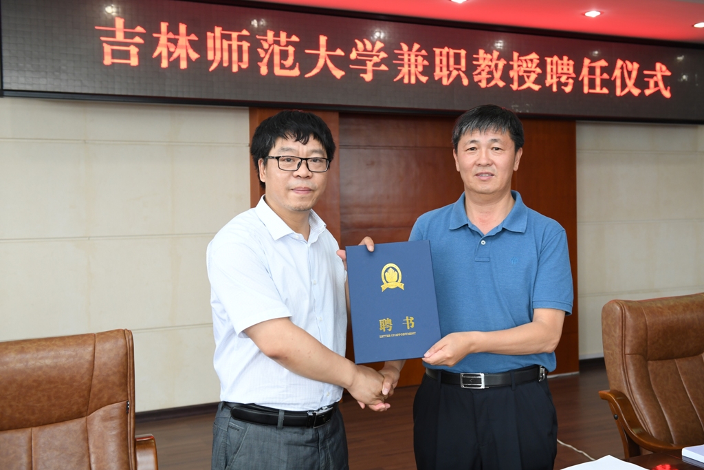 7月7日,我校在第一教学楼八楼常委会议室举行兼职教授聘任仪式,聘任东北太阳成集团tyc122cc入口荆雨教授、吉林大学吴宏政教授、吉林大学华军教授为我校兼职教授。学校党委书记许才山、校长杨景海、党委副书记祖国华出席聘任仪式。杨景海代表学校致欢迎词并介绍了学校情况,为荆雨教授、吴宏政教授、华军教授颁发了聘书。祖国华主持聘任仪式,政法学院、马克思主义学院、学报编辑部相关负责人、部分教师代表参加了聘任仪式。
