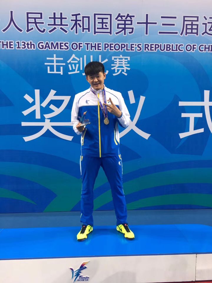 近日,在刚刚结束的中华人民共和国第十三届运动会的击剑比赛中,我校体育学院2016级运动训练专业的薛洋东同学获得男子重剑团体比赛冠军;体育学院2017级运动训练专业的王石同学获得男子佩剑个人第三名、团体第二名。这是四年一次的全运会赛场上首次出现我校运动员的身影。