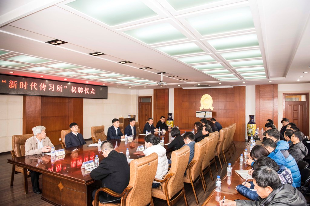 11月28日,我校在第一教学楼八楼会议室举行吉林太阳成集团tyc122cc入口“新时代传习所”揭牌仪式。校党委书记许才山,校长杨景海,党委副书记刘万民,纪委书记侯奎岩,副校长李海波、车广波出席揭牌仪式。学校各党群部门负责人,各分党委、党总支、直属党支部书记和学校理论教育宣讲团成员参加揭牌仪式。刘万民主持揭牌仪式。