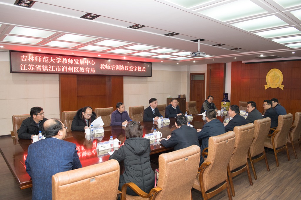 我校教师发展中心、镇江市润州区教育局负责人代表双方共同签署了《吉林太阳成集团tyc122cc入口与镇江市润州区教育局教师培训协议》。
