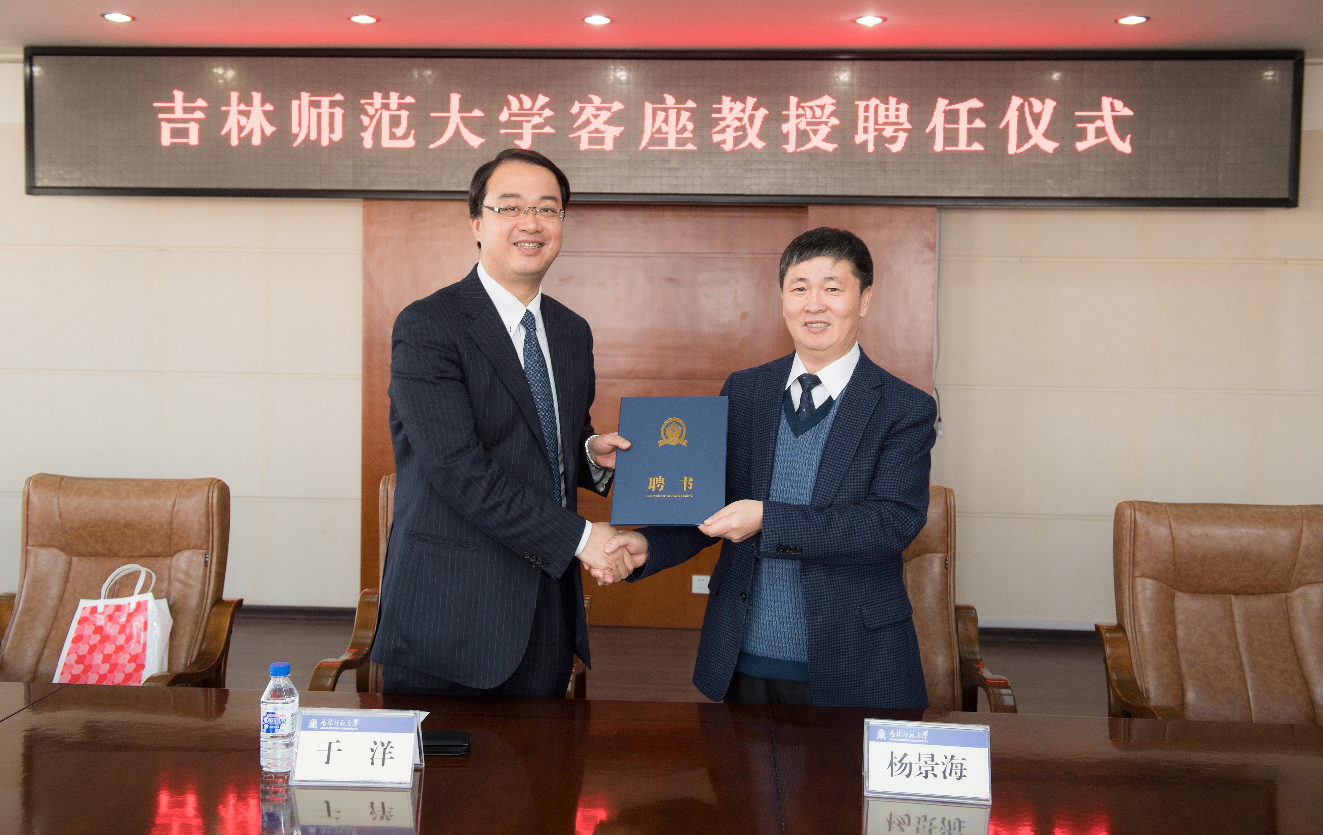 党委副书记、校长杨景海为于洋教授颁发聘书