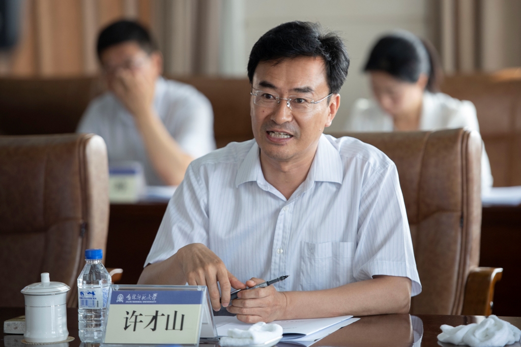 许才山代表学校向郭灵计一行的到来表示热烈欢迎。他说,吉林师大扎根于四平大地,多年以来,四平市委、市政府对我校事业发展给予大力的支持和帮助,特别是学校在发展中遇到的一些困难,市委、市政府都不遗余力的给予解决,这份深情厚谊吉师人永远铭记。当前学校正处于加快发展的历史关键时期,离不开市委、市政府的大力支持和帮助。学校将一如既往地充分利用自身在教育、科技、文化等方面的优势资源,服务四平地方经济社会发展,不断为四平新时代振兴发展作出新的更大贡献,以实际行动回报市委、市政府和四平人民对学校的厚爱。